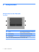 2 Komponenten Komponenten an der Oberseite TouchPad Komponente Beschreibung (1) TouchPad* Dient zum Bewegen des Mauszeigers und zum Auswählen und Aktivieren von Objekten auf dem Bildschirm. (2) Linke TouchPad-Taste* Funktioniert wie die linke Taste einer externen Maus. (3) Rechte TouchPad-Taste* Funktioniert wie die rechte Taste einer externen Maus. (4) TouchPad-Bildlauffeld Ermöglicht den Bildlauf nach oben oder unten. *In dieser Tabelle sind die Werkseinstellungen beschrieben.