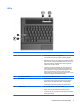 Tasten, Schalter und Lautsprecher Komponente Beschreibung (1) Schaltet die Wireless-Funktion ein oder aus, stellt jedoch keine Wireless-Verbindung her. Wireless-Taste HINWEIS: Sie müssen ein Wireless-Netzwerk einrichten oder auf eines zugreifen, um eine Wireless-Verbindung herzustellen. (2) Betriebstaste ● Wenn der Computer ausgeschaltet ist, kann er mit dieser Taste eingeschaltet werden. ● Wenn der Computer eingeschaltet ist, kann mit dieser Taste der Ruhezustand eingeleitet werden.