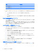 機能 ホットキー スピーカの音を消す fn + f9 スピーカの音量を上げる fn + f11 スピーカの音量を下げる fn + f12 コンピュータのキーボードでホットキー コマンドを使用するには、以下の操作のどちらかを行いま す。 ● fn キーを短く押し、次にホットキー コマンドの 2 番目のキーを短く押します。 または ● fn キーを押しながらホットキー コマンドの 2 番目のキーを短く押した後、両方のキーを同時に 離します。 システム情報を表示する(fn + esc) fn + esc を押すと、システムのハードウェア コンポーネントおよびシステム BIOS のバージョン番号 に関する情報が表示されます。 Windows では、fn + esc を押すと、システム BIOS(基本入出力システム)のバージョンが BIOS の 日付として表示されます。一部の機種では、BIOS の日付は 10 進数形式で表示されます。BIOS の日 付はシステム ROM のバージョン番号と呼ばれることもあります。 [ヘルプとサポート]を表示する(fn + f1) [ヘルプとサポート]を表示する