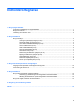Indholdsfortegnelse 1 Brug af pegeredskaber Angivelse af indstillinger for pegeredskaber ......................................................................................... 1 Brug af TouchPad ................................................................................................................................ 2 Tilslutning af en ekstern mus ................................................................................................................