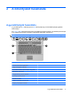 1 A mutatóeszközök használata Részegység Leírás (1) Érintőtábla* A mutató mozgatására és a képernyőn megjelenő elemek kiválasztására és aktiválására szolgál. (2) Az érintőtábla bal gombja* Az egér bal gombjával azonos módon működik. (3) Az érintőtábla jobb gombja* Az egér jobb gombjával azonos módon működik. (4) Az érintőtábla görgetőterülete Görgetés felfelé és lefelé. *A táblázat az alapértelmezett beállításokat tartalmazza.