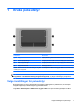 1 Bruke pekeutstyr Komponent Beskrivelse (1) Styrepute* Flytter pekeren og merker eller aktiverer elementene på skjermen. (2) Venstre styreputeknapp* Fungerer på samme måte som venstre knapp på en ekstern mus. (3) Høyre styreputeknapp* Fungerer på samme måte som høyre knapp på en ekstern mus. (4) Styreputerulleområde Ruller opp eller ned. *Denne tabellen beskriver standardinnstillinger. Velg Start > Kontrollpanel > Maskinvare og lyd > Mus for å vise eller endre innstillinger for styreputen.