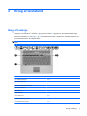 1 Brug af pegeredskaber Komponent Beskrivelse (1) TouchPad* Flytter markøren samt vælger og aktiverer elementer på skærmen. (2) Venstre TouchPad-knap* Fungerer som venstre knap på en ekstern mus. (3) Højre TouchPad-knap* Fungerer som højre knap på en ekstern mus. (4) TouchPad-rullezone Ruller op eller ned. *I denne tabel beskrives standardindstillingerne. Vælg Start > Kontrolpanel > Printere og anden hardware > Mus for at få vist eller ændre indstillingerne for TouchPad.