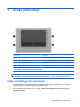 1 Bruke pekeutstyr Komponent Beskrivelse (1) Styrepute* Flytter pekeren og merker eller aktiverer elementene på skjermen. (2) Venstre styreputeknapp* Fungerer på samme måte som venstre knapp på en ekstern mus. (3) Høyre styreputeknapp* Fungerer på samme måte som høyre knapp på en ekstern mus. (4) Styreputerulleområde Ruller opp eller ned. *Denne tabellen beskriver standardinnstillinger.