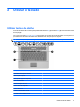 1 Usar dispositivos apontadores Componente Descrição (1) Painel Táctil* Move o ponteiro e selecciona ou activa itens no ecrã. (2) Botão esquerdo do painel táctil* Funciona como o botão esquerdo do rato externo. (3) Botão direito do Painel Táctil* Funciona como o botão direito do rato externo. (4) Zona de deslocamento do Painel Táctil Desloca-se para cima ou para baixo. *Esta tabela descreve as predefinições.