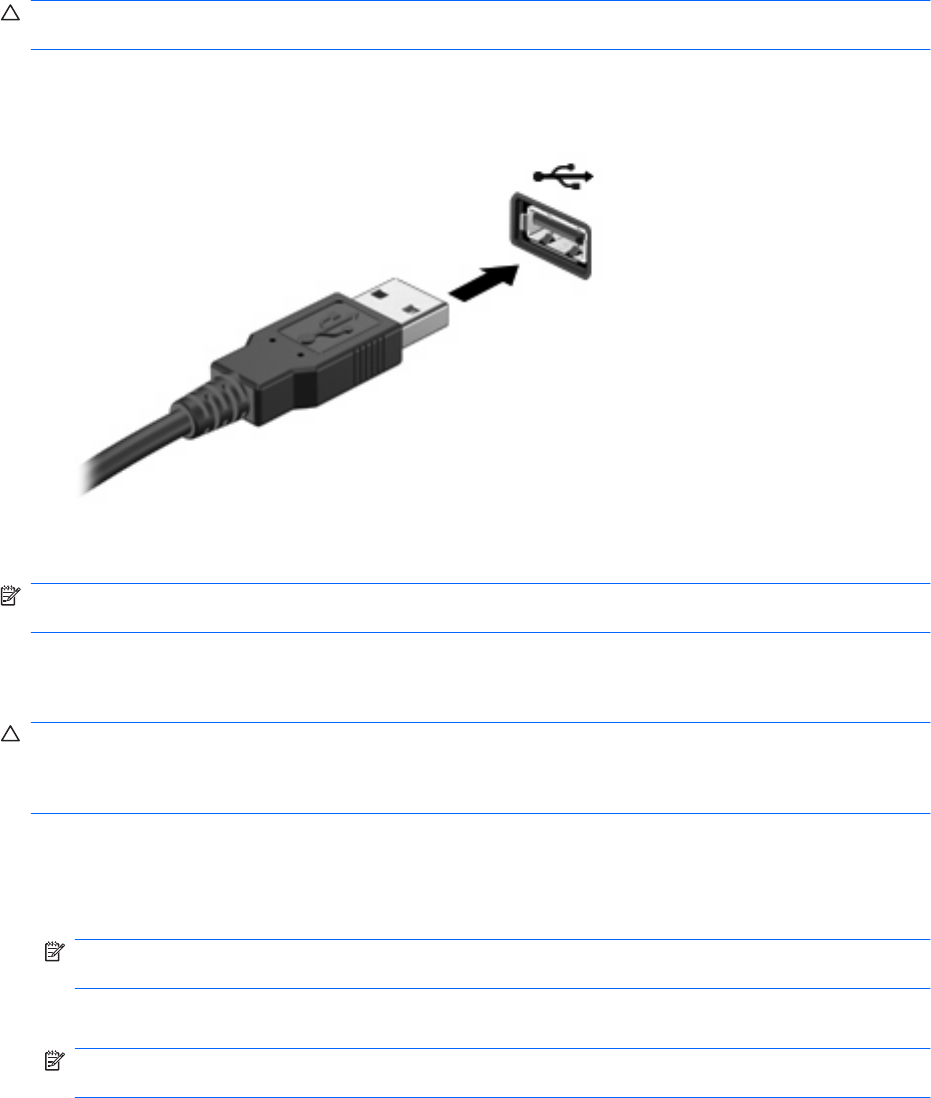 CUIDADO: Para evitar danos a um conector USB, utilize pouca força para conectar um dispositivo