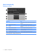- Komponenta Popis můžete také snížit stisknutím levé části voliče hlasitosti nebo ji zvýšit stisknutím pravé části voliče. (8) 8 Snímač otisků prstů (pouze u vybraných modelů) Kapitola 2 Komponenty Umožňuje přihlašování do systému Windows pomocí snímače otisků prstů namísto přihlašování heslem.