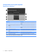 Tabla de contenido 1 Identificación del hardware 2 Componentes Aviso del producto ................................................................................................................................ 3 Componentes de la parte superior ....................................................................................................... 4 Dispositivos señaladores ..................................................................................................... 4 Indicadores luminosos ........