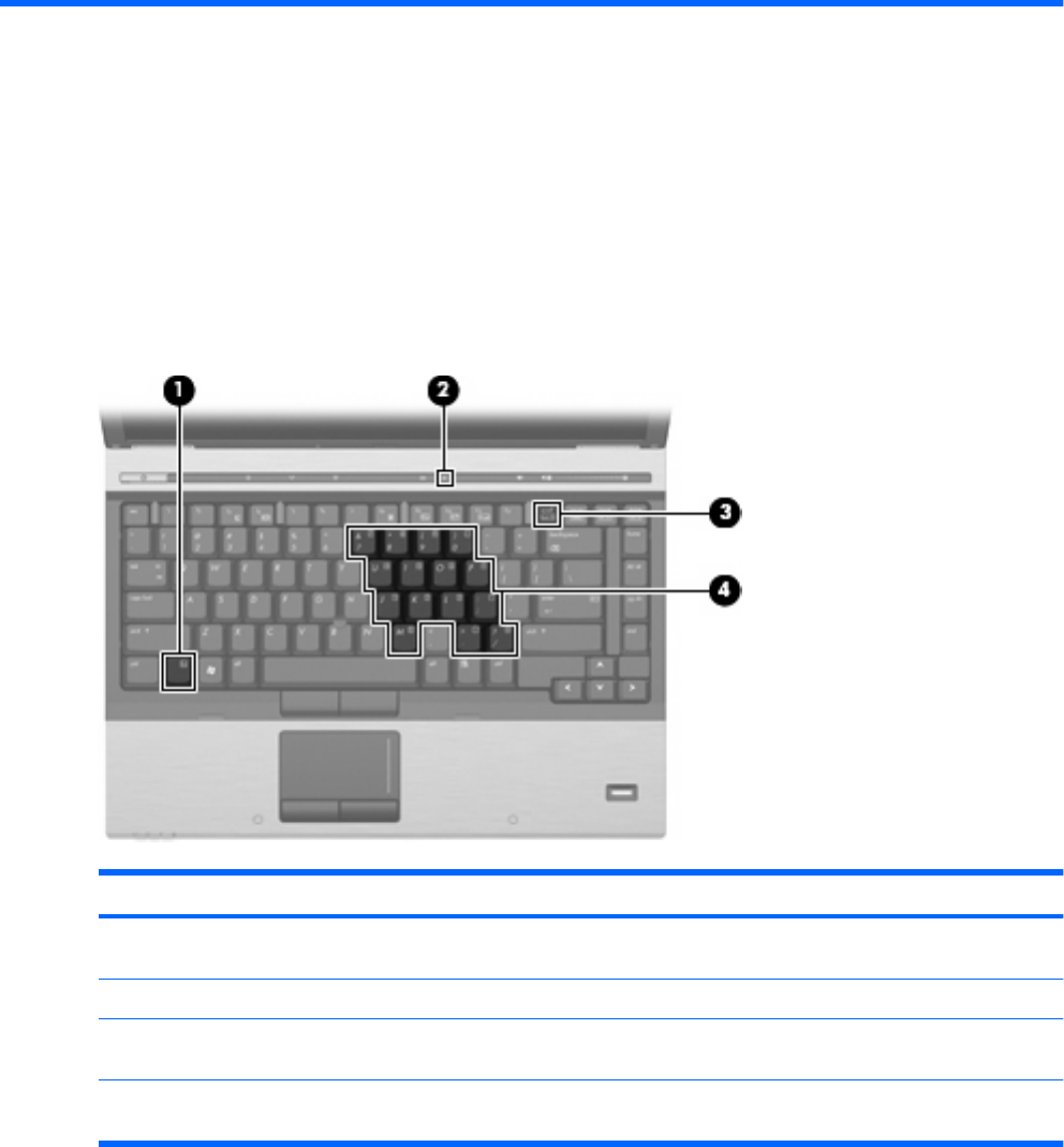 (3) Tasto bloc num Quando premuto in combinazione con il tasto fn, abilita il tastierino