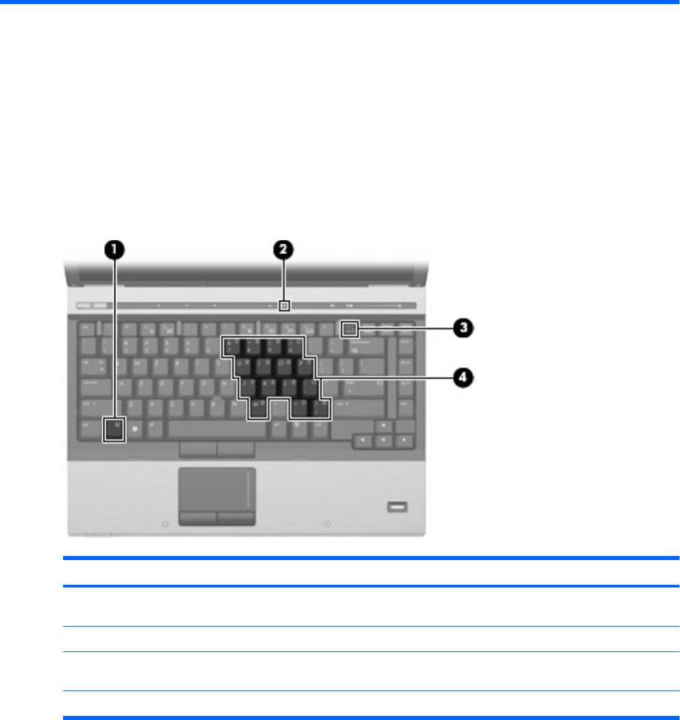 (2) Indicador luminoso de bloq num Encendido: La función bloq num está activada.