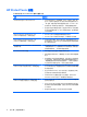 简短说明 详细说明 解决方法 Credential Manager 存在 如果用户登录 Credential Manager,在 HP 正在研究未来产品增强功能的解决之道。 与 Corel WordPerfect 12 WordPerfect 中创建文档,并用保护密码 密码 GINA 不兼容的问题。 进行保存,则无论以手动还是自动方式, Credential Manager 都无法检测或识别密 码 GINA。 Credential Manager 无法 识别屏幕上的 Connect (连接)按钮。 如果将远程桌面连接 (RDP) 的单次登录 HP 正在研究未来产品增强功能的解决之道。 凭证设置为 Connect(连接),则在重 新启动单次登录时,它总是进入 Save As (另存为),而不是 Connect(连接)。 用户可能会丢失受 TPM 保 护的所有 Credential Manager 凭证。 如果 TPM 模块被删除或损坏,用户将丢 失用它来保护的所有凭证。 仅在 Windows XP Service Pack 1 上,当从 睡眠模式转换到休眠模式 后,用户无法登录 Credentia