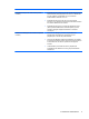 9 Résolution de problèmes Credential Manager for HP ProtectTools Brève description Détails Solution À l'aide de l'option Credential Manager Network Accounts (Comptes réseau Credential Manager), un utilisateur peut sélectionner le compte auquel se connecter dans le domaine. Lorsque l'authentification TPM est utilisée, cette option n'est pas disponible. Toutes les autres méthodes d'authentification fonctionnent normalement.