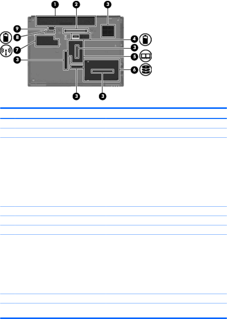 (7) Compartimento do módulo de WWAN Contém um módulo de WWAN (somente em determinados