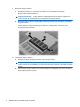 Установка или замена модуля памяти в гнезде модуля расширения памяти ВНИМАНИЕ! Во избежание поражения электрическим током и повреждения оборудования перед установкой модуля памяти отключите шнур питания и извлеките из переносного компьютера все аккумуляторы. ПРЕДУПРЕЖДЕНИЕ: Электростатический разряд может привести к повреждению электронных компонентов. Перед началом любых операций необходимо снять статическое электричество, коснувшись заземленного металлического предмета.