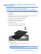 Pridanie alebo výmena pamäťového modulu v rozširujúcej zásuvke pre pamäťový modul VAROVANIE! Pred inštaláciou pamäťového modulu vytiahnite napájací kábel a vyberte batérie, aby ste znížili riziko úrazu elektrickým prúdom a poškodenia zariadenia. UPOZORNENIE: Elektrostatický výboj môže poškodiť elektronické súčasti. Pred vykonaním akéhokoľvek úkonu sa dotknite uzemneného kovového predmetu, aby ste vybili statickú elektrinu.