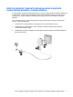 Modemkábel csatlakoztatása FIGYELEM! Az áramütés, a tűz és a meghibásodás veszélyének elkerülése érdekében ne csatlakoztassa a (csak egyes típusokhoz mellékelt) modem- vagy a telefonkábelt az RJ-45 típusú (adathálózati) csatlakozóhoz. A modemkábel csatlakoztatása: 2 1. Csatlakoztassa a modemkábelt a számítógépen lévő modemcsatlakozóhoz (1). 2. Csatlakoztassa a modemkábel másik végét egy RJ-11 típusú fali telefonaljzatba (2). 1.