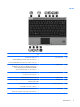 תיאור רכיב )(8 אזור הגלילה של עוצמת הקול לכוונון עוצמת הקול של הרמקולים .החלק את האצבע שמאלה להחלשת עוצמת הקול וימינה להגברת עוצמת הקול .כמו כן ,באפשרותך ללחוץ לחיצה ממושכת על סמל החיסור )–( כדי להחליש או עוצמת הקול ,או ללחוץ לחיצה ממושכת על סמל החיבור ) (+כדי להגביר את עוצמת הקול. )(9 קורא טביעות אצבע מאפשר כניסה ל Windows-באמצעות טביעת אצבע ,במקום כניסה באמצעות סיסמה.