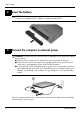 Basic Setup 2 Insert the battery For your safety, use only the AC adapter or battery provided with the Å WARNING: computer, or a replacement AC adapter or battery provided by HP. 3 Connect the computer to external power To reduce the risk of electric shock or damage to your equipment, observe Å WARNING: these practices: ■ Plug the power cord into an AC outlet that is easily accessible at all times.
