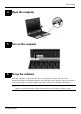 Basic Setup 4 Open the computer 5 Turn on the computer 6 Set up the software After the computer is turned on, the software setup process begins. The on-screen instructions guide you through setting up and registering your computer. After you respond to the setup prompt, you must complete the entire setup process without interruption. select your language carefully. On some models, the languages you do not ✎ Please choose are deleted from the system and cannot be restored during software setup.