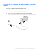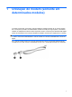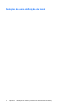 Conexão de um cabo de modem AVISO! Para reduzir o risco de choque elétrico, incêndio ou danos ao equipamento, não conecte um cabo de modem (fornecido com determinados modelos somente) ou de telefone no conector RJ-45 (rede). Para conectar um cabo de modem: 2 1. Conecte o cabo de modem à tomada do modem (1) no computador. 2. Conecte o cabo de modem à tomada de telefone RJ-11 na parede (2).