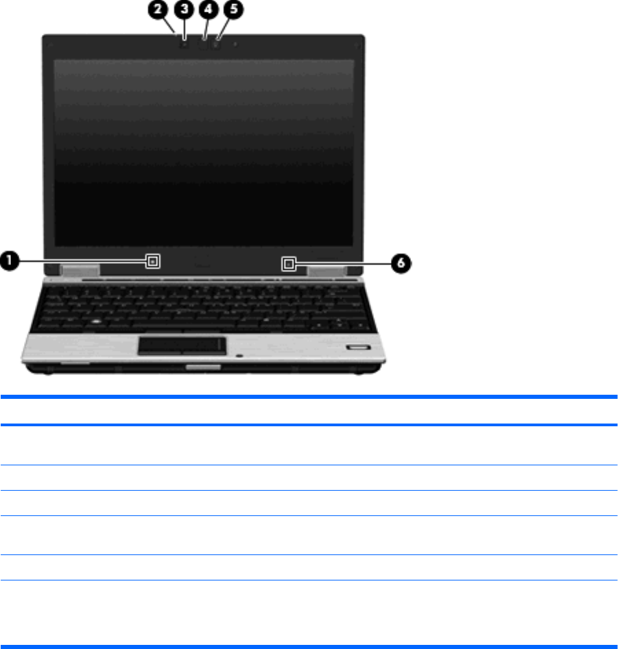 (2) Luz da webcam (somente em alguns modelos) Acesa: a câmara integrada está a ser utilizada.