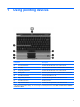 1 Using pointing devices Component Description (1) Left TouchPad button* Functions like the left button on an external mouse. (2) TouchPad* Moves the pointer and selects or activates items on the screen. (3) Left pointing stick button* Functions like the left button on an external mouse. (4) Pointing stick* Moves the pointer and selects or activates items on the screen. (5) TouchPad on/off button Turns the TouchPad on or off.