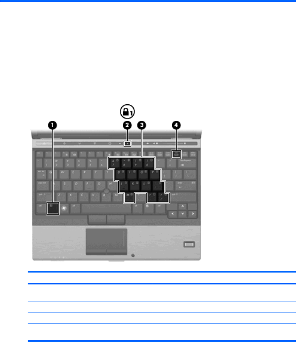 (4) num lk tuşu fn tuşuyla birlikte basıldığında katıştırılmış sayısal tuş takımını