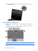 1 Osoitinlaitteiden käyttäminen Kohde Kuvaus (1) Kosketusalustan vasen painike* Toimii kuten ulkoisen hiiren ykköspainike. (2) Kosketusalusta* Siirtää osoitinta sekä valitsee ja aktivoi näytössä olevia kohteita. (3) Osoitintikun vasen painike* Toimii kuten ulkoisen hiiren ykköspainike. (4) Osoitintikku* Siirtää osoitinta sekä valitsee ja aktivoi näytössä olevia kohteita. (5) Kosketusalustan virtapainike Ottaa kosketusalustan käyttöön tai poistaa sen käytöstä.