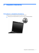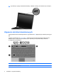 Funkcja Skrót klawiaturowy Uruchamianie stanu wstrzymania. fn+f3 Przełączanie wyświetlania obrazu. fn+f4 Wyświetlanie informacji o bateriach fn+f8 Zmniejszanie jasności obrazu. fn+f9 Zwiększanie jasności obrazu. fn+f10 Włączenie czujnika światła otaczającego. fn+f11 Aby użyć polecenia skrótu klawiaturowego, należy wykonać jeden z poniższych kroków: ● Nacisnąć krótko klawisz fn, a następnie nacisnąć krótko drugi klawisz polecenia skrótu klawiaturowego.