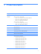 chipset 1 diskette drive 2 docking 3 Ethernet 2 external media cards 3 graphics 1 hard drives 2 keyboard 3 memory module 1 modem module 2 operating system 4 optical drives 2 panels 1 pointing devices 3 ports 3 power requirements 4 processors 1 product name 1 security 4 serviceability 4 wireless 3 product name 1 R RAID (Redundant Array of Independent Disks) devices 102 rear cover illustrated 31 recovery partition 135 release latches, battery 16 removal/replacement preliminaries 37 procedures 43 restore secur