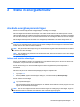 Spara på batteriet ● Välj energischemat Energisparläge via Energialternativ under System och säkerhet på Kontrollpanelen i Windows. ● Stäng av trådlösa anslutningar och anslutningar för lokalt nätverk när du inte använder dem. ● Koppla bort externa enheter som inte är anslutna till elnätet, om du inte använder dem. ● Stoppa, inaktivera eller ta ut eventuella externa mediekort som du inte använder. ● Använd snabbtangenterna fn+f9 och fn+f10 när du vill anpassa skärmens ljusstyrka.
