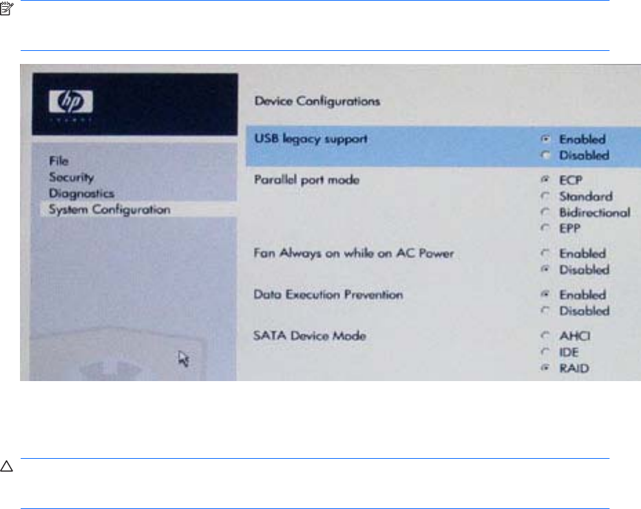 FORSIGTIG: Sluk IKKE for computeren, mens rom'en gemmer ændringerne i Computer Setup
