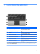Onderdeel (2) Presentatieknop Beschrijving ● HP Help en ondersteuning ● HP Notebook Accessories Product Tour (Productaccessoires voor de notebookcomputer in vogelvlucht) ● HP Notebook Product Tour (Notebookcomputer in vogelvlucht) ● HP Gebruikershandleidingen ● HP Connection Manager ● HP Software Setup ● Presto! BizCard 5 Hiermee opent u een venster met presentatieopties, dat u kunt gebruiken om veelgebruikte presentaties, bestanden, programma's of websites te starten.