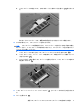9. 4 つのキーボード ラッチをスライドさせて、キーボードの固定を解除します。 10. キーボードの上端部分を慎重に持ち上げ、キーボードを傾けてコンピュータのパームレストに乗 るまで回転させます。 注記: キーボードの右側よりも左側の方が先に外れてしまった場合は、キーボードを少し左側 に引き寄せて右側の固定を解除します。 11. 以下の手順に沿って、メモリ モジュールを取り外します。 a.