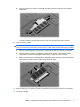 Adding or replacing a memory module in the expansion memory module slot To add or replace a memory module in the expansion memory module slot, follow these steps: 1. Save your work. 2. Shut down the computer and close the display. If you are not sure whether the computer is off or in Hibernation, turn the computer on by pressing the power button. Then shut down the computer through the operating system. 3. Disconnect all external devices connected to the computer. 4.