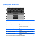 Toetsen OPMERKING: Uw computer kan er iets anders uitzien dan de in dit gedeelte afgebeelde computer. Onderdeel Beschrijving (1) esc-toets Druk op deze toets in combinatie met de fn-toets om systeeminformatie weer te geven. (2) fn-toets Druk op deze toets in combinatie met een functietoets of de esctoets om veelgebruikte systeemfuncties uit te voeren. (3) Windows-logotoets Hiermee geeft u het menu Start van Windows weer.