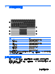 1 使用指標裝置 組件 說明 (1) 指標桿 移動指標,並選擇或啟動螢幕上的項目。 (2) 左指標桿按鈕 功能類似外接式滑鼠的左鍵。 (3) 觸控板* 移動指標,並選擇或啟動螢幕上的項目。 (4) 左觸控板按鈕* 功能類似外接式滑鼠的左鍵。 (5) 右指標桿按鈕 功能類似外接式滑鼠的右鍵。 (6) 觸控板捲軸區* 向下或向上捲動。 (7) 右觸控板按鈕* 功能類似外接式滑鼠的右鍵。 *本表格說明原廠設定。 若要檢視及變更指標裝置偏好設定,請選取「開始」>「裝置和印表機」。 然後,在代表您電腦的裝置 上按一下滑鼠右鍵,並選取「滑鼠設定」。 設定指標裝置偏好設定 使用 Windows® 中的「滑鼠內容」,自訂指標裝置的設定,例如按鈕設定、按鍵速度與指標選項。 若要存取「滑鼠內容」,請選取「開始」>「裝置和印表機」。 然後,在代表您電腦的裝置上按一下滑 鼠右鍵,並選取「滑鼠設定」。 設定指標裝置偏好設定 1