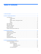 Table of contents 1 Product description ........................................................................................................................................ 1 2 External component identification ................................................................................................................ 5 Top components ................................................................................................................................... 5 Pointing devices ...............