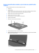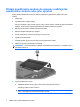 Inovace paměťového modulu v první zásuvce paměťového modulu Postup při rozšíření paměti v první zásuvce paměťového modulu: 1. Uložte práci. 2. Vypněte počítač. Pokud si nejste jisti, zda je počítač vypnutý nebo v režimu spánku, zapněte jej stisknutím tlačítka napájení. Potom počítač vypněte prostřednictvím nabídky operačního systému. 3. Odpojte všechna externí zařízení připojená k počítači. 4. Odpojte napájecí kabel zásuvky napájení. 5. Otočte počítač dnem vzhůru a položte jej na rovný povrch. 6.