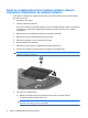 Ajout ou remplacement de modules mémoire L'ordinateur est doté de deux compartiments de module mémoire. Le compartiment principal de module mémoire est situé sous le clavier. Le compartiment d'extension de module mémoire est situé sous l'ordinateur. La capacité de mémoire de l'ordinateur peut être mise à niveau en ajoutant un module mémoire au compartiment d'extension vide ou en mettant à niveau le module mémoire existant dans le compartiment principal.