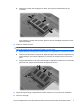 Mise à niveau d'un module mémoire dans le compartiment principal de module mémoire Pour mettre à niveau un module mémoire dans le connecteur principal de module mémoire, procédez comme suit : 1. Enregistrez votre travail. 2. Arrêtez l'ordinateur. Si vous ne savez pas si l'ordinateur est éteint ou en mode Veille prolongée, mettez-le sous tension en appuyant sur l'interrupteur d'alimentation. Mettez-le ensuite hors tension via le système d'exploitation. 3.