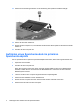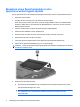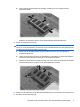 13. Ziehen Sie die Sicherungsschraube an der Abdeckung des Speichermodulfachs fest (3). 14. Setzen Sie den Akku wieder ein. 15. Drehen Sie den Computer um, und schließen Sie die externe Stromquelle und die externen Geräte wieder an. 16. Schalten Sie den Computer ein. Aufrüsten eines Speichermoduls im primären Speichersteckplatz Um ein Speichermodul im primären Speichersteckplatz aufzurüsten, führen Sie folgende Schritte aus: 1. Speichern Sie Ihre Daten. 2. Schalten Sie den Computer aus.