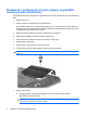 Dodawanie i wymiana modułów pamięci Komputer jest wyposażony w dwie komory modułów pamięci. Podstawowa komora modułu pamięci jest umieszczona pod klawiaturą. Komora dodatkowego modułu pamięci znajduje się na spodzie komputera. Pojemność pamięci komputera można zwiększyć, dodając moduł pamięci do wolnego gniazda dodatkowego lub wymieniając istniejący moduł pamięci na moduł o wyższej pojemności.