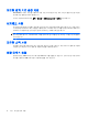 포인팅 장치 기본 설정 지정 Windows®의 마우스 속성을 사용하여 버튼 구성, 마우스를 누르는 속도, 포인터 옵션과 같은 포인팅 장치에 대한 설정을 사용자 정의합니다. 마우스 속성에 액세스하려면 시작 > 제어판 > 하드웨어 및 소리 > 마우스를 선택합니다. 터치패드 사용 포인터를 이동하려면 터치패드 표면에 손가락을 대고 포인터를 이동할 방향으로 밉니다. 외장 마우스 의 버튼처럼 터치패드의 해당 버튼을 사용하십시오. 터치패드 수직 스크롤 영역을 사용하여 위쪽과 아 래쪽으로 스크롤하려면 손가락을 직선으로 위쪽 또는 아래쪽으로 밀면 됩니다. 주: 터치패드를 사용하여 포인터를 이동하는 경우에는 스크롤 영역으로 이동하기 전에 터치패드에서 손가락을 떼야 합니다. 터치패드에서 스크롤 영역으로 손가락을 밀기만 해서는 스크롤 기능이 활성화 되지 않습니다. 포인팅 스틱 사용 화면에서 포인터를 이동하고자 하는 방향으로 포인팅 스틱을 누릅니다.