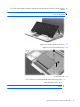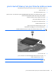 .10הרם בזהירות את הקצה העליון של המקלדת והטה את המקלדת כך שתנוח על המשען המיועד לפרק כף היד במחשב. הערה :אם צידה השמאלי של המקלדת משתחרר לפני הצד הימני ,משוך את המקלדת בעדינות לשמאל כדי לשחרר את הצד הימני. .11הסר את הבורג של מכסה תא מודול הזיכרון ).(1 .12הרם את המכסה של תא מודול הזיכרון ).(2 .13הסרת מודול הזיכרון: א. משוך כלפי חוץ את התפסים ) (1שנמצאים בשני צידיו של מודול הזיכרון. מודול הזיכרון מתרומם כלפי מעלה.