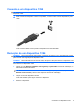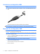 Conexão de um dispositivo USB CUIDADO: Para evitar danos a um conector USB, utilize pouca força para conectar um dispositivo USB. ▲ Para conectar um dispositivo USB ao computador, conecte o cabo USB do dispositivo à porta USB. Você ouvirá um alerta sonoro quando o dispositivo tiver sido detectado. NOTA: Se for a primeira vez que conecta um dispositivo USB, a mensagem "Instalando software de driver do dispositivo" será exibida na área de notificação, no lado direito da barra de tarefas.