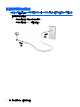 正在連接數據機傳輸線 警告! 為降低觸電、火災,或損壞設備的風險,請勿將數據機傳輸線(僅特定機型隨附)或電話線插 入 RJ-45(網路)接頭。 若要連接數據機傳輸線: 2 1. 將數據機傳輸線插入電腦上的數據機接頭 (1)。 2.