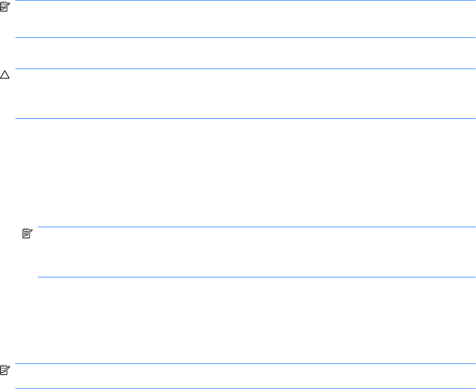 주: Windows 파티션 및 HP 복구 파티션이 표시되지 않을 경우 Windows 7 운영체제 DVD 및