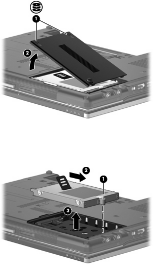 11. Levante la unidad de disco duro (3) sacándola del compartimento de la unidad de disco duro.