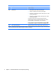 Spara på batteriet ● Välj energischemat Energisparläge via Energialternativ under System och säkerhet på Kontrollpanelen i Windows. ● Stäng av trådlösa anslutningar och anslutningar för lokalt nätverk när du inte använder dem. ● Koppla bort externa enheter som inte är anslutna till elnätet, om du inte använder dem. ● Stoppa, inaktivera eller ta ut eventuella externa mediekort som du inte använder. ● Använd snabbtangenterna fn+f9 och fn+f10 när du vill anpassa skärmens ljusstyrka.